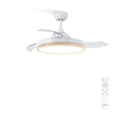 CREATE / WIND CLEAR M/Ventilador de techo con luz madera clara con mando / 40W, Ø108 cm, temporizador, 6 velocidades, aspas retráctiles, 3 temperaturas de luz, función verano-invierno