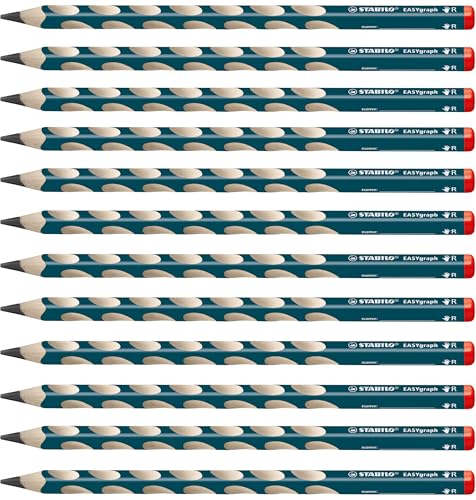 STABILO – Lápiz triangular ergonómico para diestros – EASYgraph en color petrol – Pack de 12 – Dureza HB