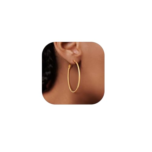 GoldChic Pendientes de Aro Dorado Acero Inoxidable 50mm Aros Medianos Finos Oro Hipoalergénicos Ligeros Minimalistas Joyas de Mujer Chica