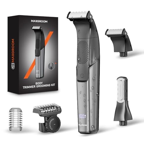 MAXGROOM Afeitadora Corporal Masculina 2 en 1, Depiladora Corporal Hombre con Peine Ajustable para Cuerpo y Zona Intima, en Seco y Húmedo, Pantalla LED y Recargable Tipo-C, Negro