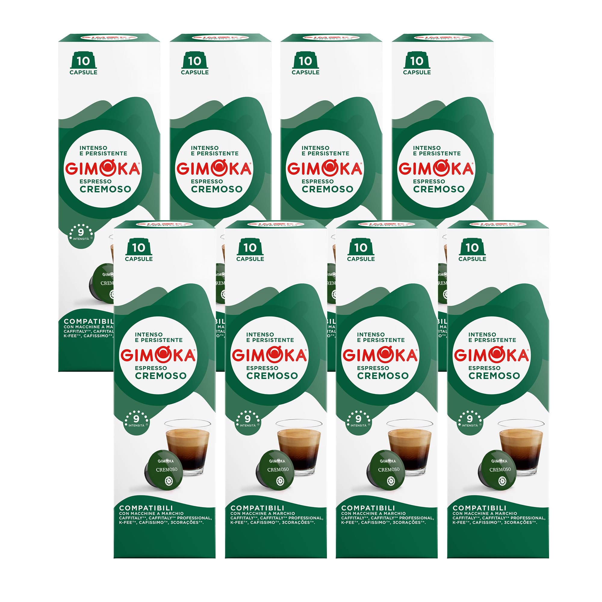 Gimoka Mezcla de Café Espresso Cremoso, intensidad 7/10-80 Cápsulas – Compatibles con Máquinas de Café Caffitaly Y Tchibo Cafissimo – Producido en Italia – 8 paquetes de 10