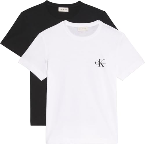 Calvin Klein Camisetas de Manga Corta Pack de 2 Mujer Logo tee con Cuello Redondo, Multicolor (Black/Brilliant White), L