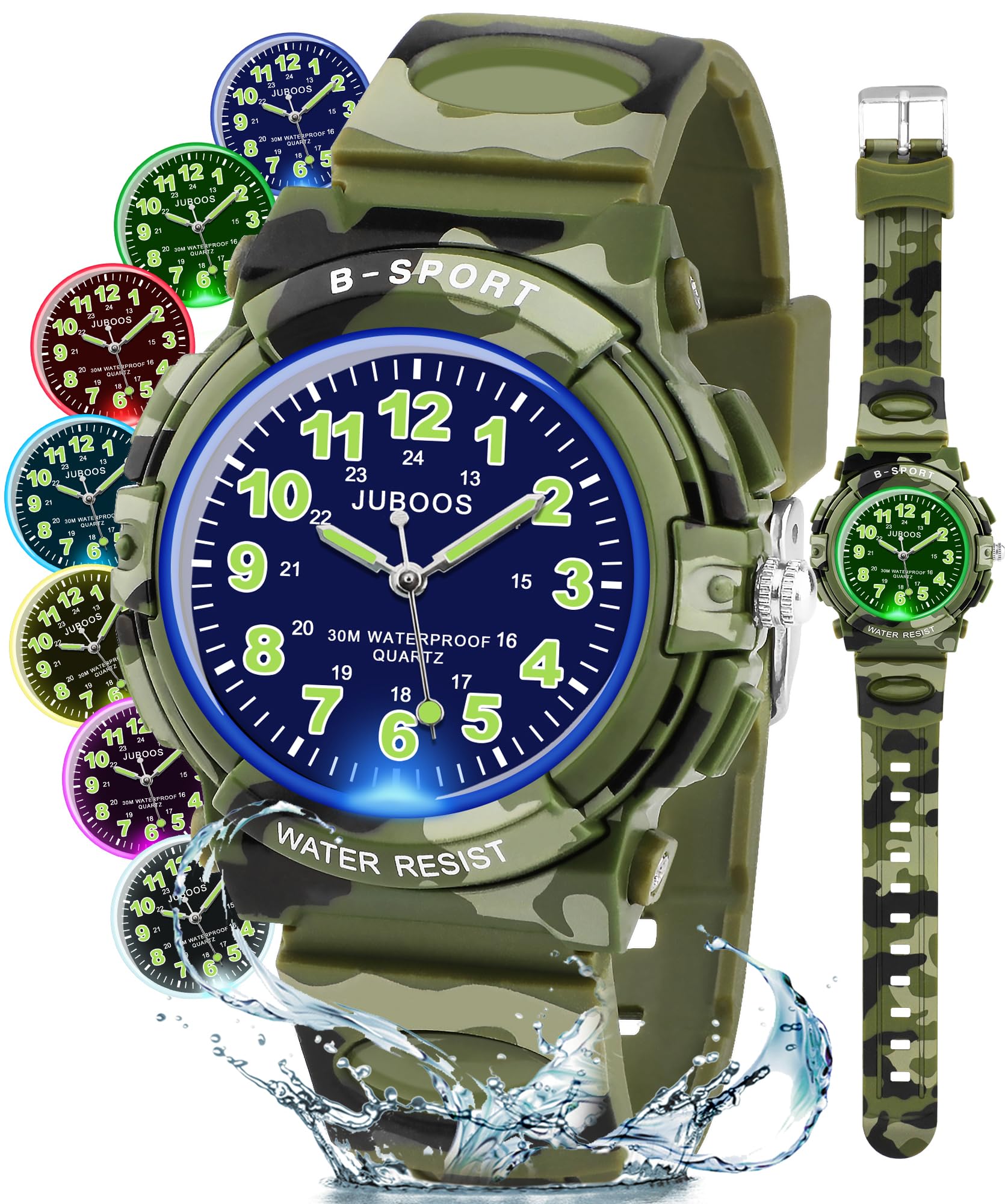 Juboos Reloj Analógico para Niños, Resistente al Agua hasta 3 ATM, Fácil de Leer, Reloj de Enseñanza del Tiempo para Niño y Niña, Banda Suave para Niños 5-16