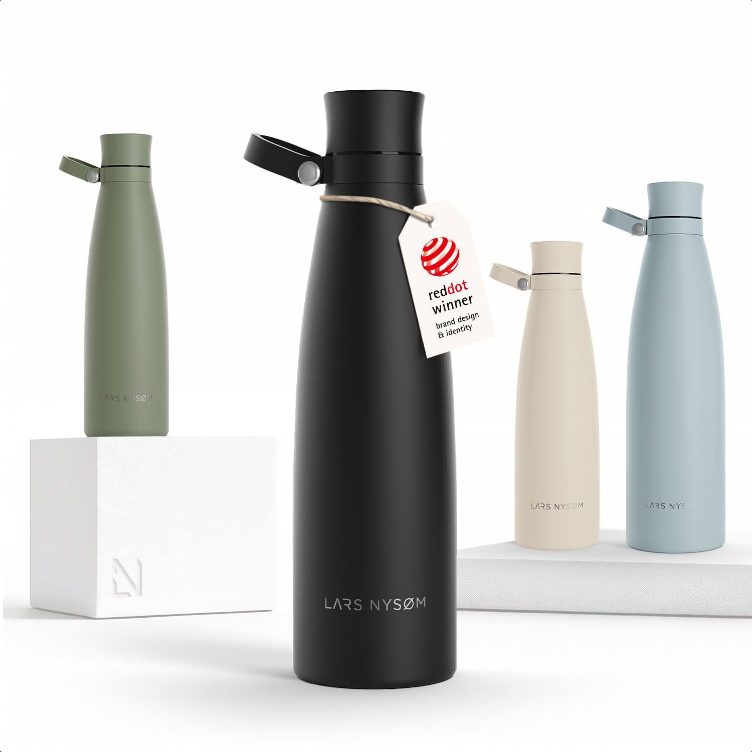 LARS NYSØM Botella de Acero Inoxidable | Botella aislada 0,75l | Cantimplora de 0,75 litro a prueba de fugas para deportes, bicicleta, perro (Carbon Black, 750ml)