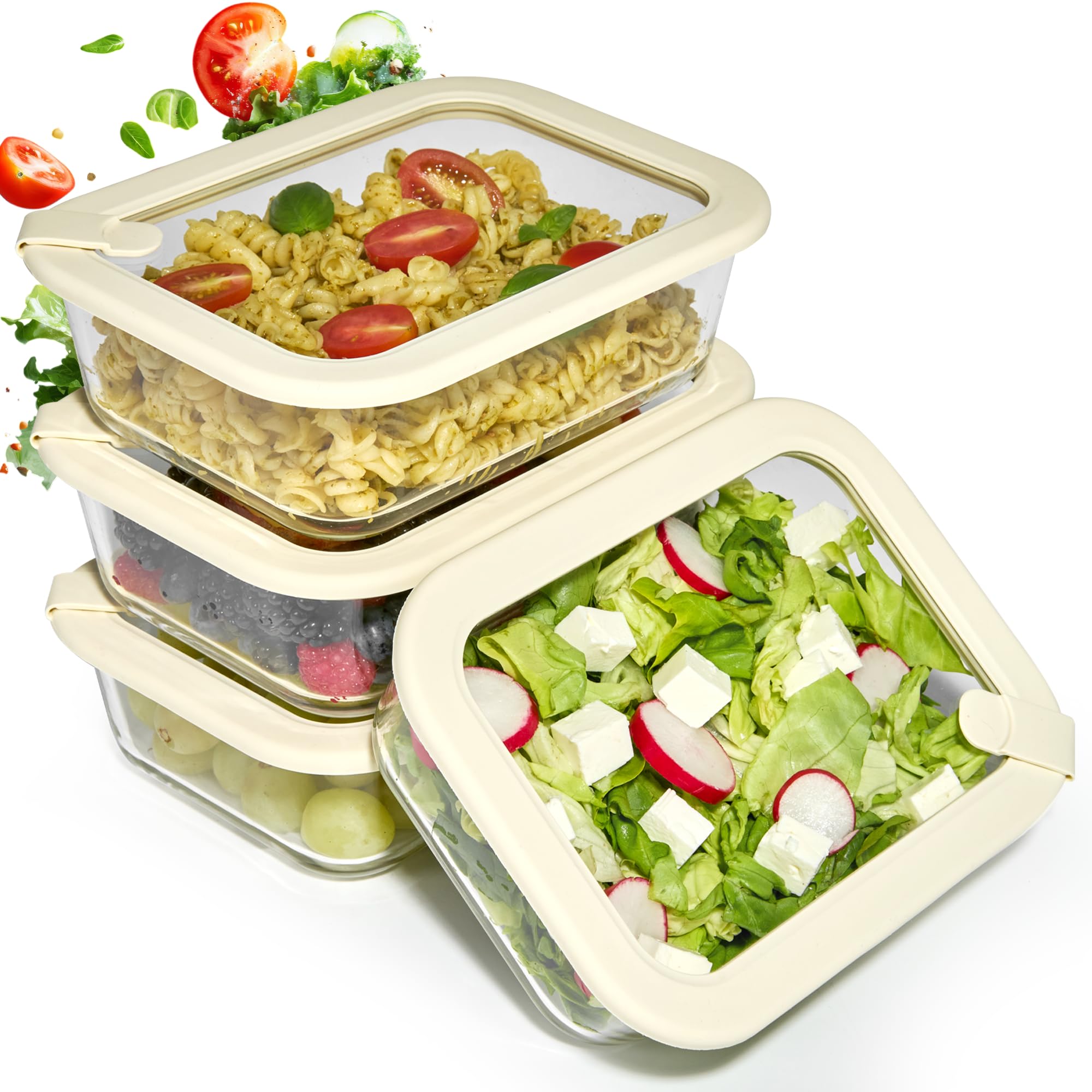 Dalena Home Recipiente de Vidrio Borosilicato rectangular con Tapa Set de 4x1020ml – Fiambrera Cristal, Contenedor Alimentos, Conservación Nevera, Organizadores Cocina, Almacenaje