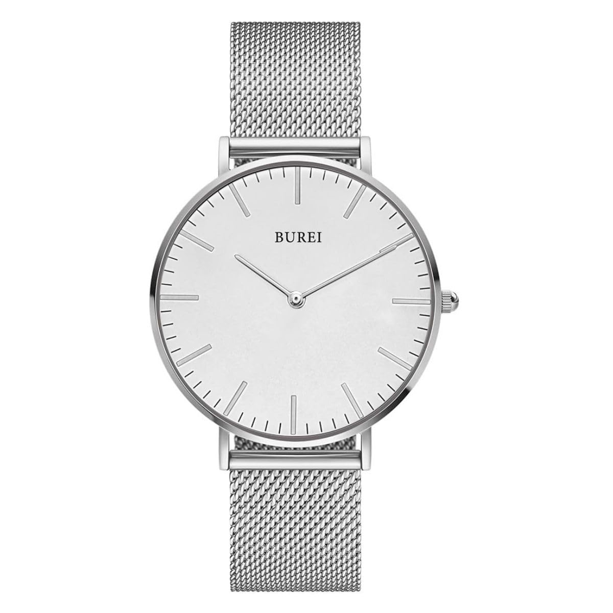 BUREI Relojes ultrafinos Demen Minimalista Reloj de Pulsera Demen analógico japonés de Cuarzo con Correa de Malla de Acero Inoxidable Regalos para Mujeres
