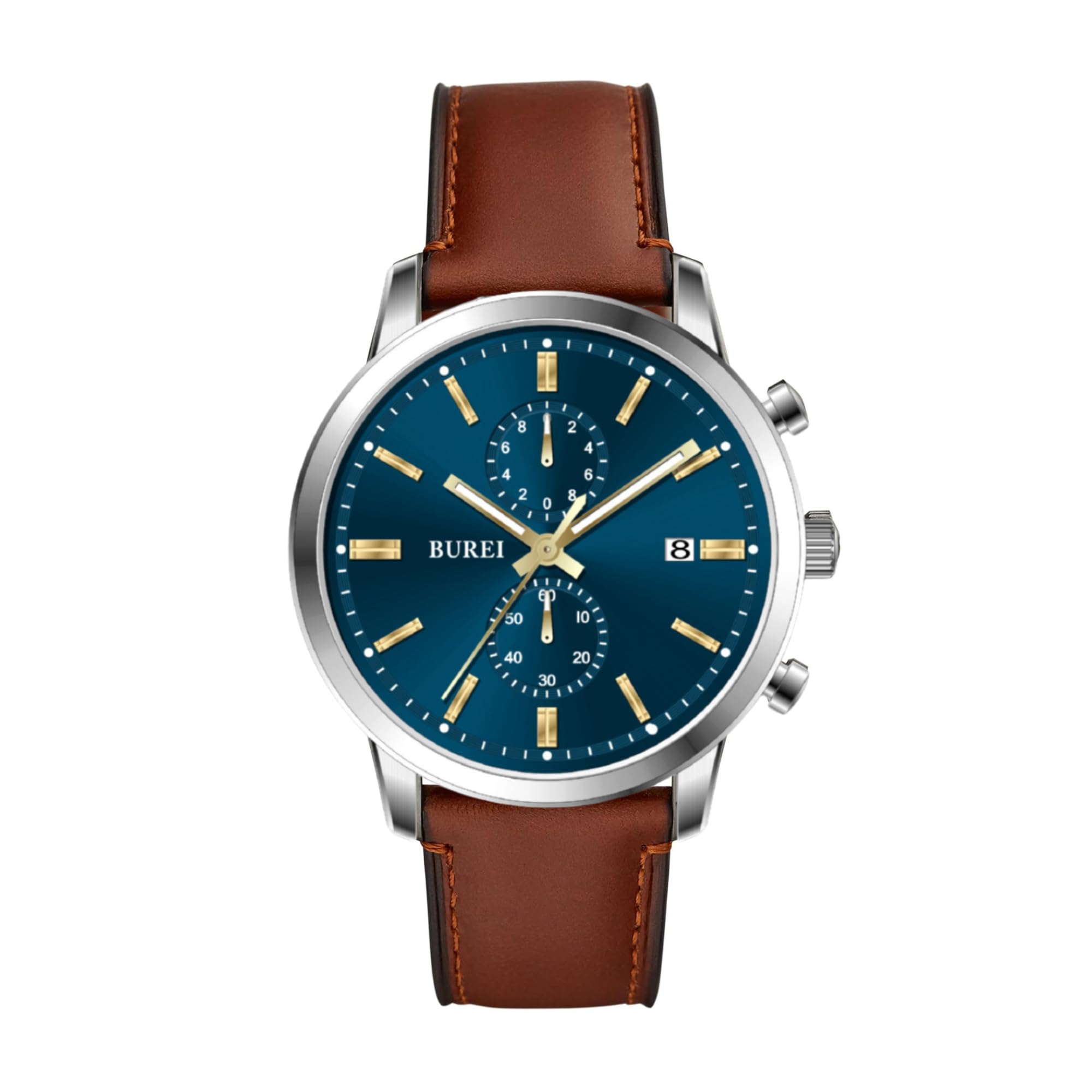 BUREI Relojes Hombre Cronógrafo Cuarzo Japonés Impermeable Reloj de Pulsera de Cuero para Hombres Negocios Casual Deportes