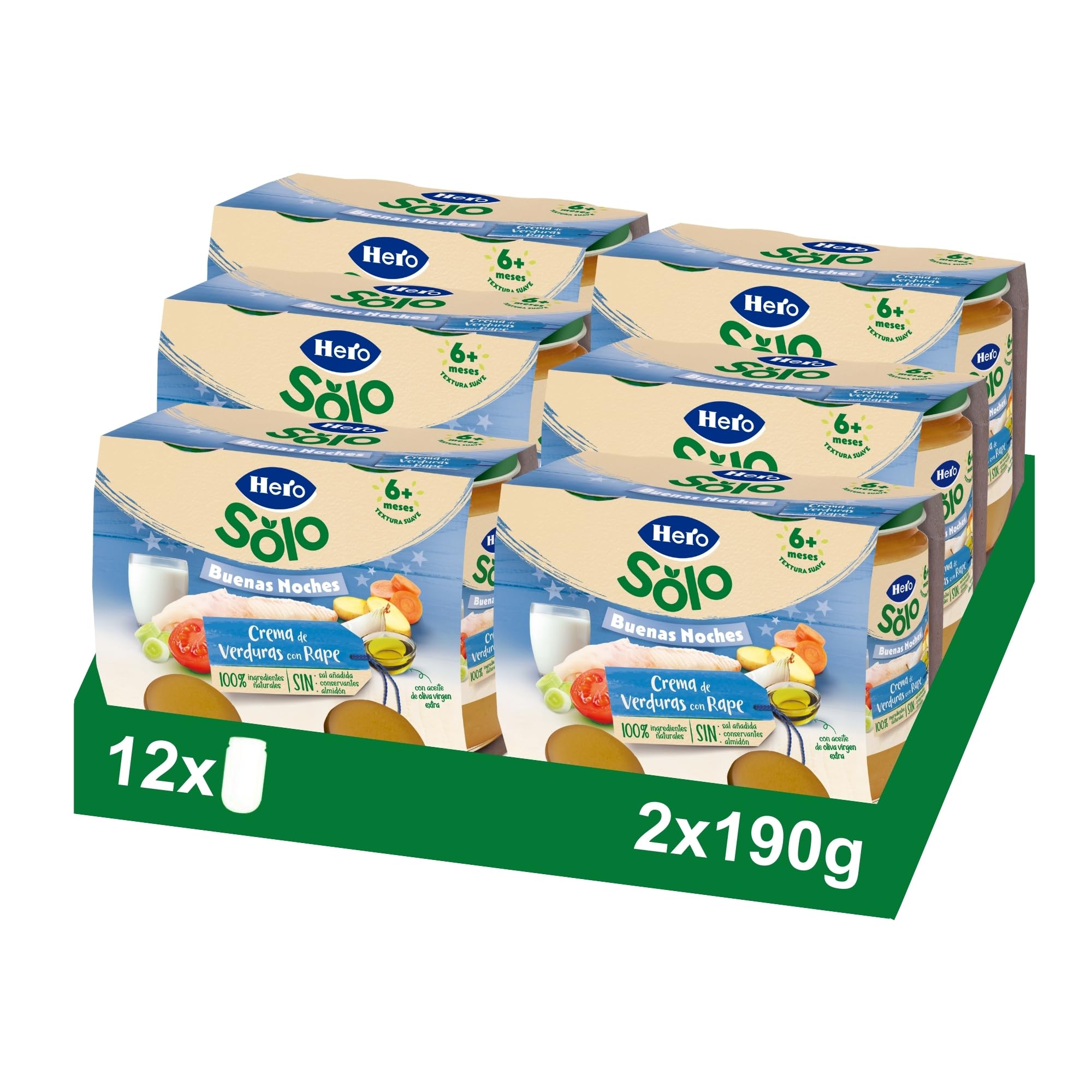 Hero Baby – Tarritos Infantiles, Buenas Noches Tarritos de Crema de Verduras con Rape, Alimento Infantil para Bebés a Partir de los 8 Meses – 190 g (Paquete de 12)