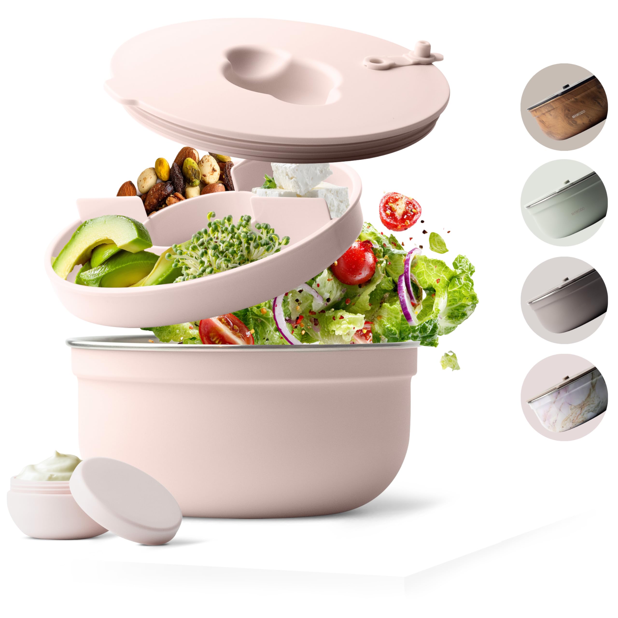 MAMEIDO Caja de Ensalada para llevar 1,5 l, Lunch box de acero Bento Box sin BPA, Bol con compartimentos y contenedor de apósitos a prueba de fugas, Fiambreras Comida Trabajo (Blush Kissed)