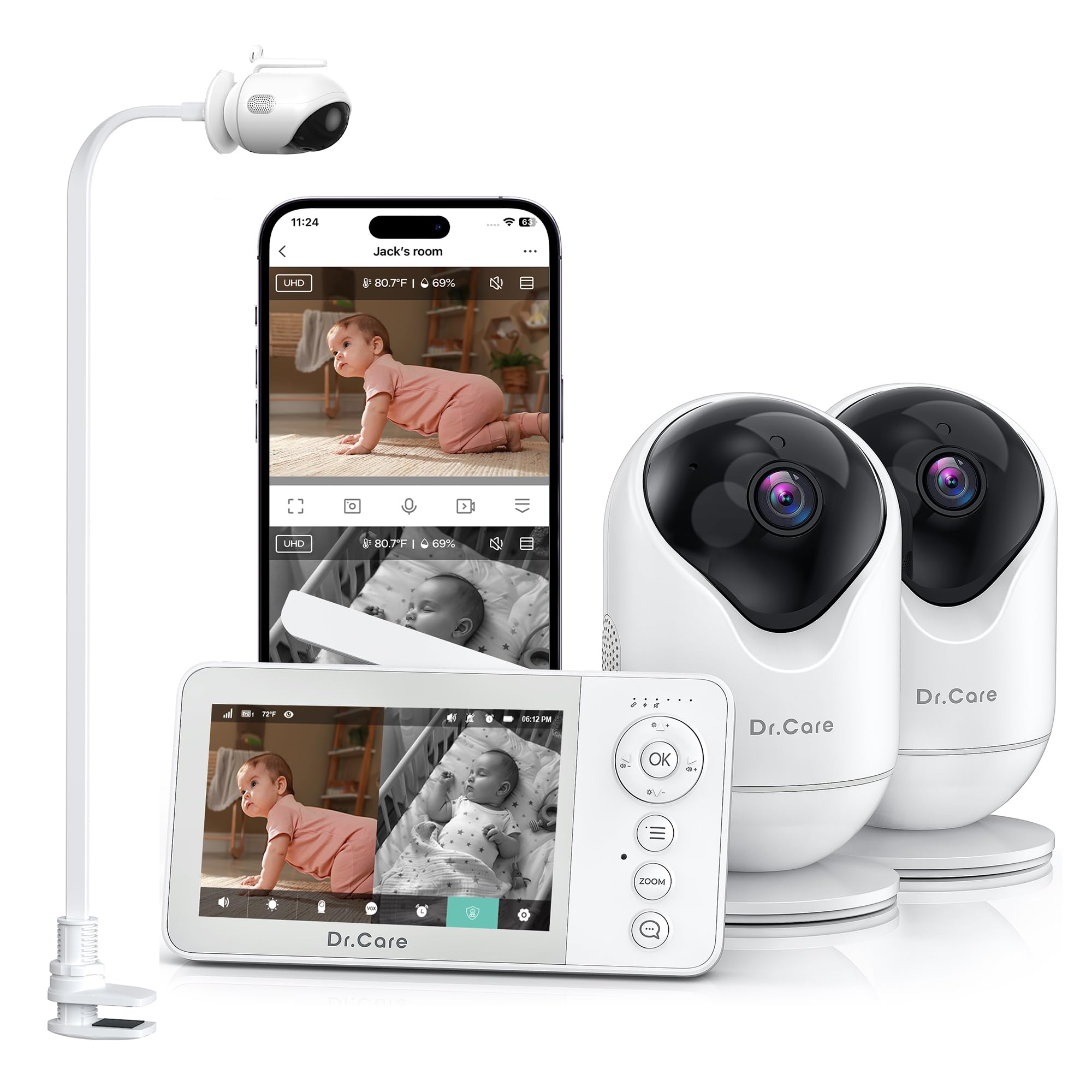 Dr.Care Camara Vigilancia Bebe con App VistaView Lite RB Smart WiFi, Cámara 1080P, Pantalla Dividida de 4″ 720P, HD Visión Nocturna, Audio Bidireccional (2 Cámaras + 1 Monitor + 1 Soporte Clip)