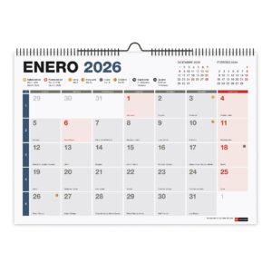 Miquelrius – Calendario 2026 de pared Completo, Organizador anual A3: 420 x 296 mm, Con espacio para anotar, Encuadernación espiral doble, Planificador 12 meses, Español Consulta el precio en Amazon