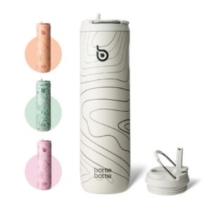 BOTTLE BOTTLE Botella de agua aislada de 24 onzas con tapa de popote y asa, para deportes, viajes, gimnasio, botellas de agua de acero inoxidable, doble pared, metal al vacío, a prueba de fugas, sin Consulta el precio en Amazon