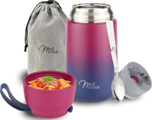 Milu Termo para Comida 800 ml Taza Aislada, Botella de Acero Inoxidable Aislada Alimentos, Beber y sopa de los niños de adultos Térmico (800ml/Azul Baya) Consulta el precio en Amazon