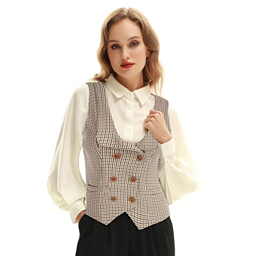 Belle Poque Chaleco de mujer Vintage sin mangas chaleco cruzado elegante chaleco, Manta marrón., XXL