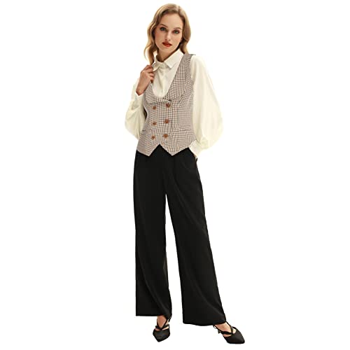 Belle Poque Chaleco de mujer Vintage sin mangas chaleco cruzado elegante chaleco, Manta marrón., XXL