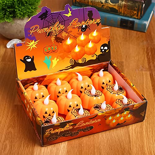 🎃 【Halloween Candle Pumpkin Light Set】: Nuestras velas electrónicas de Halloween tienen un total de 12, Tamaño de la lámpara de vela de calabaza: 4,8 cm * 4,3 cm. Alimentado por batería de botón LED (incluida la batería de botón).