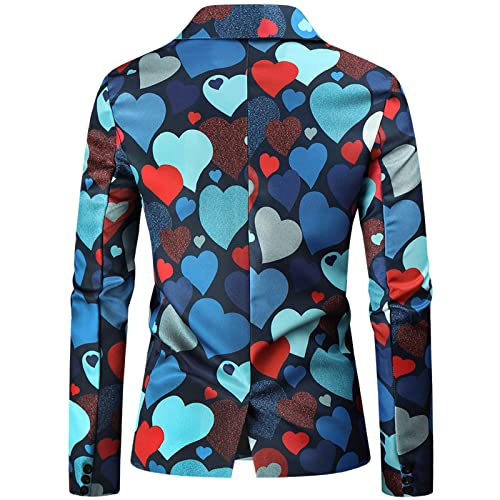 Blazer Chaqueta de Traje para Hombre Casual Traje de Dos Piezas Informal a la Moda para Hombre, Abrigo con Estampado de Amor, Conjunto de Chaqueta y Pantalones, Chaleco y cómodo,