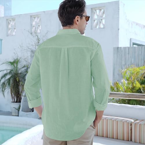 Camisa de Lino Camisa de Lino de Manga Larga para Hombre Camisa Casual Ajuste Negocios Casual Vacaciones Verde 3XL
