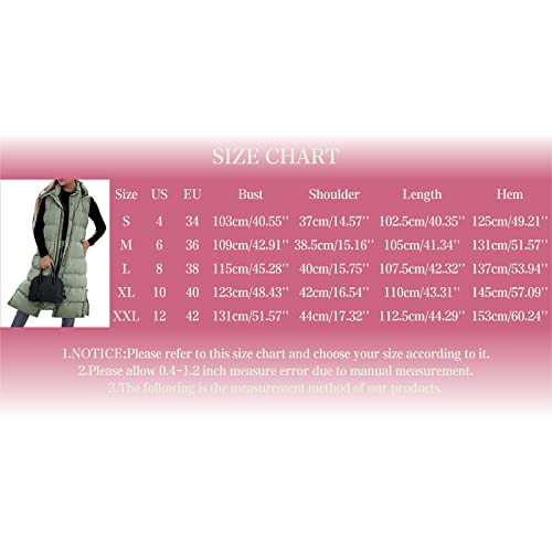 Chaleco de plumón para mujer con capucha largo – Chaleco para mujer para exteriores, extralargo, chaleco de invierno, chaqueta térmica con cremallera, abrigo de plumas para exteriores, bolsillos,