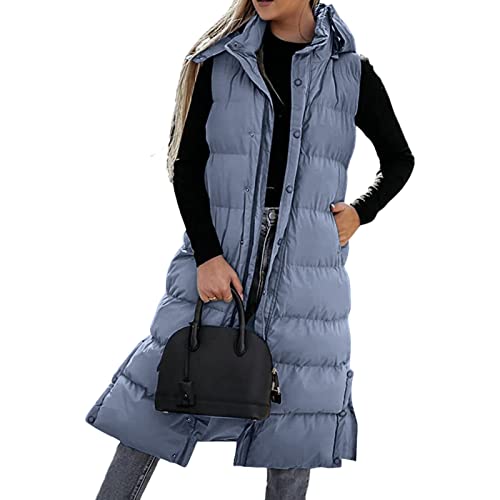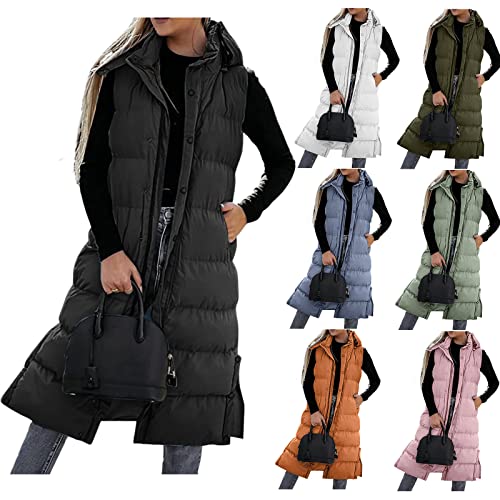 Chaleco largo de plumón para mujer, chalecos negros para mujer, abrigo largo de plumón con capucha, abrigo largo de plumón para mujer, chaqueta de plumón azul oscuro, chaqueta de entretiempo para mujer, chaqueta de entretiempo negra para otoño, chaleco XXL para mujer, chaleco largo de plumón para mujer, chaleco con capucha sin mangas, chaqueta acolchada ligera para mujer, abrigo de invierno, elegante chaleco largo de punto para mujer corto