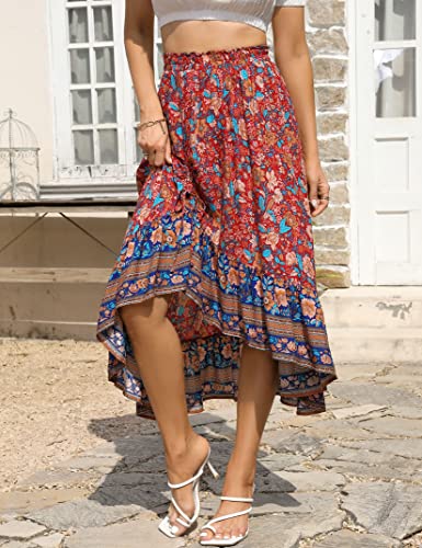 Clearlove Falda bohemia para mujer, falda de verano elástica de cintura alta, bohemia, maxi, falda informal a línea, Impresión roja, XL