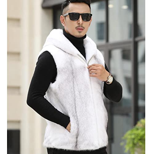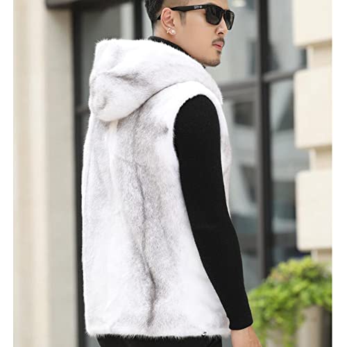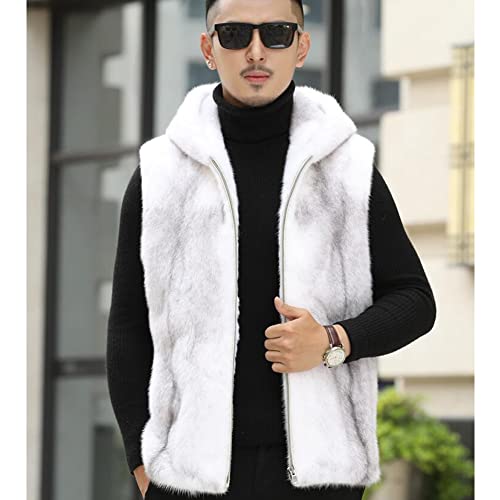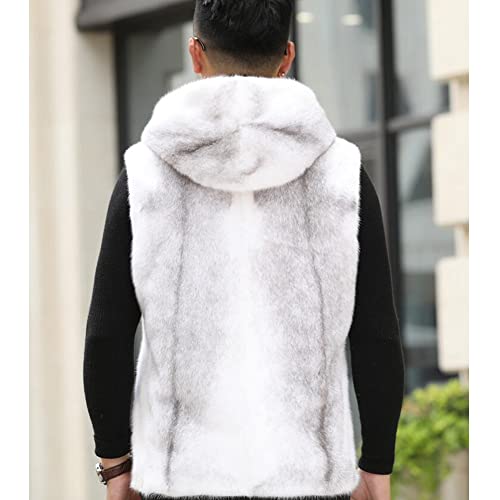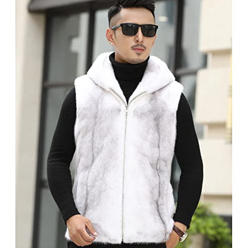 Denny&Dora Chaleco de piel con capucha Chaleco de piel de visón para hombre Chaleco de piel de visón genuino Chaleco de invierno grueso de piel completa (as1, alpha, m, regular, regular, Grey, M)
