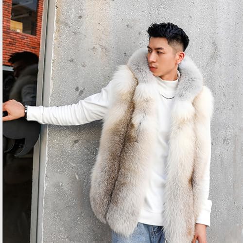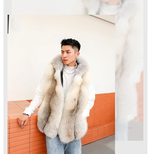 Denny&Dora Chaleco de piel de zorro para hombre, chaqueta de invierno sin mangas, abrigo de piel con capucha, color azul (EE. UU., Alpha, grande, regular, regular, gris claro)
