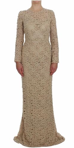 Hermoso vestido largo con etiquetas, 100% auténtico DOLCE & GABBANA de encaje floral beige de manga larga y longitud completa.
