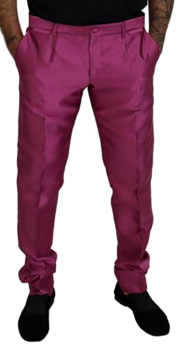 Dolce & Gabbana Pantalones ajustados de seda rosa para hombre, Rosa, 48