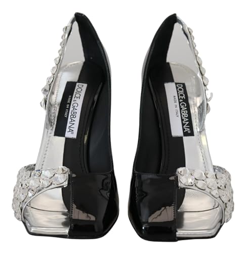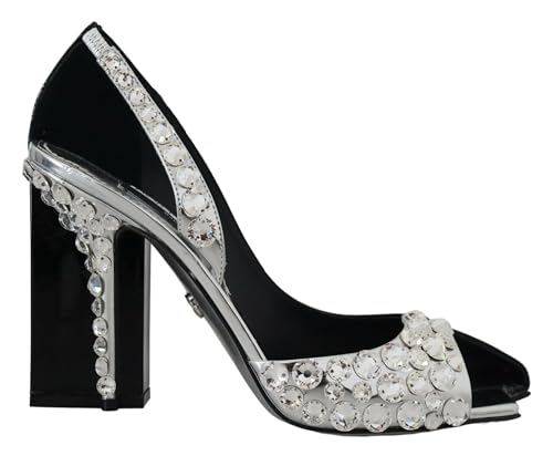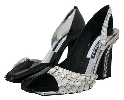 Dolce & Gabbana Zapatos de tacón alto para mujer, diseño doble, color negro y plateado, Negro | Plata, 8.5