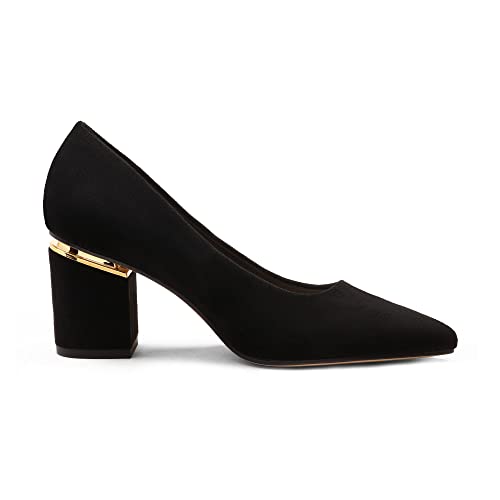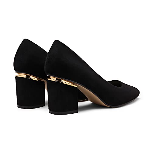 DREAM PAIRS Zapatos de TAC?n Cl?sicos Mujer Zapatillas de Punta Afilada con TAC?n Ancho Zapatos de Sal?n Negro/Ante SDPU2226W-E Talla 40 (EUR)