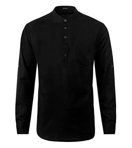 【Características】 Camiseta henley de lino para hombre, mangas largas (enrollado) cuello alto, camisa sólida, dobladillo redondo, camiseta henley holgada informal para hombre con bolsillo que es lo suficientemente grande como para guardar su teléfono celular o gafas de sol, por ejemplo.