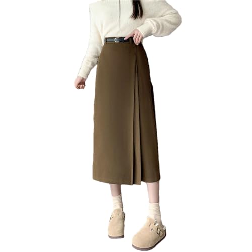 Faldas acampanadas de cintura alta para mujer, estilo vintage, sencillas, rectas, caqui, 40