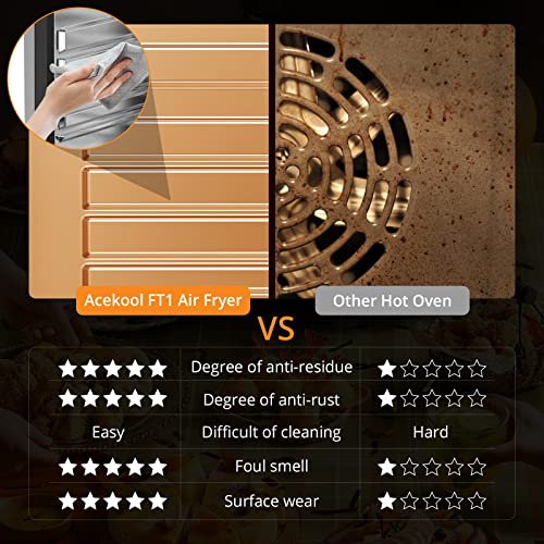 【Poco aceite, Más Formas Cocinar】El nuevo Acekool horno de aire ofrece los sabores de un horno y versatilidad de una freidora de aire, mientras el volumen de aceite se reduce en 80%. Trae la delicia de diferentes ingredientes con método de cocción más saludable, que puede cocinar bistec, baquetas, camarones, pescado, pizza, tocino, papa frita, verduras, etc. La función de deshidratación se puede utilizar para alimentos como fruta o carne seca. Combinación de tostadora, horno y freidora de aire.