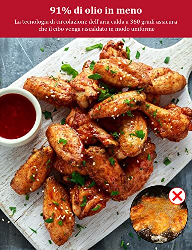 【Fácil para Principiantes】Esta freidora de aire está equipada con 9 menús preestablecidos, solo un toque en la pantalla para seleccionar el menú. Gracias a la alta potencia de 1800 W, puede cocinar pescado, camarones, pollo a la parrilla, papas fritas y otros platos deliciosos en 8 a 30 minutos. Con 35 recetas, también configurar libremente el tiempo de cocción (1-60 minutos) y la temperatura (50-200 °C). Incluye un juego completo de accesorios de cocina preparar fácilmente sus platos favoritos.