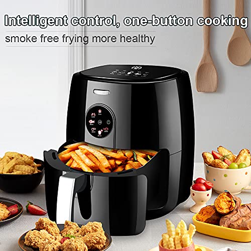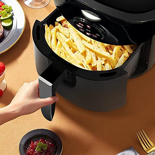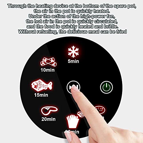 🍕【Fácil de usar】 La freidora de aire es sensible al tacto. Muy simple y conveniente. Con 6 programas preestablecidos, diseñados para una familia de 3 a 5 personas,puede preparar rápidamente Chips, pescado, filete, etc. O puede ajustar por separado la temperatura y el tiempo según sus propias recetas.