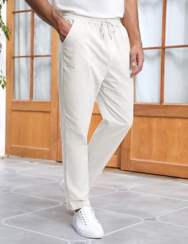 heekpek Pantalones Lino Hombre Verano Pantalon Hombre Casual Pantalones Cómodos Hombre Ligeros Pantalones para Hombre con Cordón, Blanco, XL