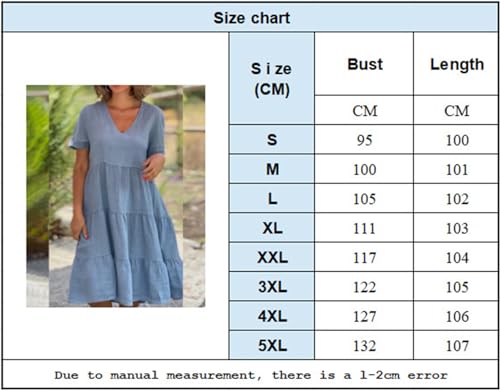 HFDHD Vestido de Color Liso con Cuello en V y Lino de algodón Vestidos fluidos con Cuello en V para Mujer (3XL,Orange)