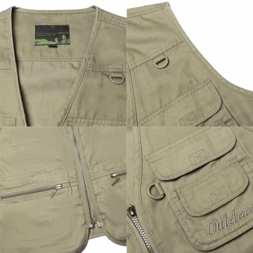 HZQIFEI Hombres Chaleco Fotografía de Pesca Multifunción Chaleco de Trabajo al Aire Sin Mangas Chaleco de Trabajo Camping Senderismo MJ09 (Caqui, 5XL)