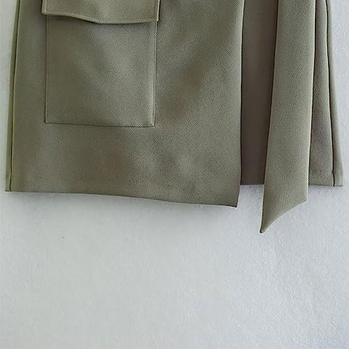 IJNHYTG Falda Larga Women Front Pocket with Belt Skirt Female Casual Asymmetrical Solid Color A Line High Waist Simply Skirts (Size : L)