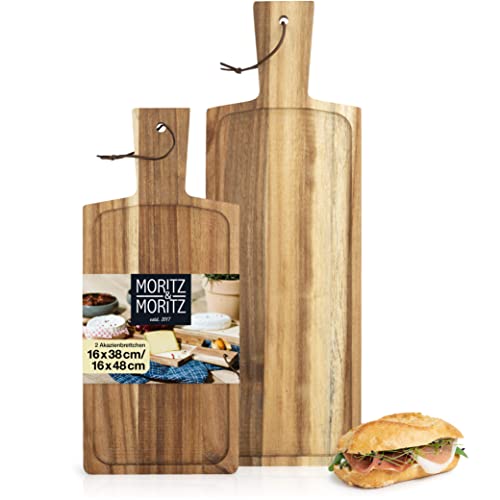 Moritz & Moritz 2 tablas de madera para servir con mango – Decorativas tablas de madera de acacia para cortar, aderezar y servir queso