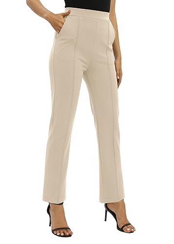 Mujeres Oficina Casual Piernas Rectas Trabajo Pantalones Sólido Cintura Elástica Largos Pantalones con Bolsillos(S, Camello)