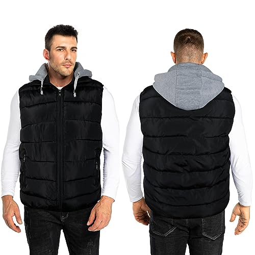 Ommda Chaleco Acolchados con capucha para Hombre, Invierno Chalecos Acolchados con Bolsillo y Cremallera, Negro, L