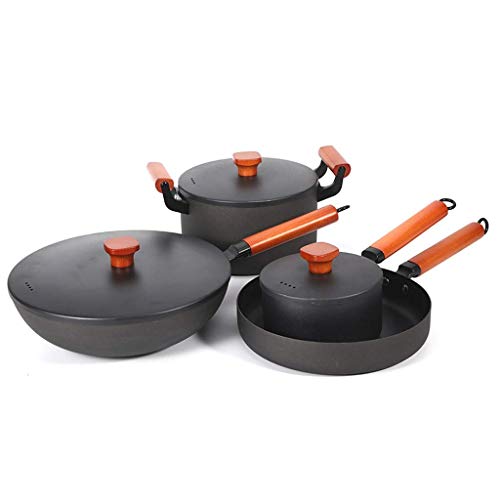 Especificaciones: wok de 30 cm.Sartén 26cm.Olla sopera 24cm.Lechero 16 cm.