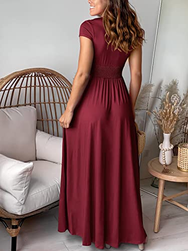 QUNERY Vestido Largo Mujer Manga Corta Vestido Mujer Verano Elegante Vestidos Cuello en V Dividido Verano para Fiesta en la Playa Rojo Vino L