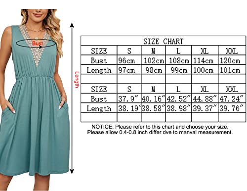 QUNERY Vestido Verano Mujer Vestidos Cortos sin Mangas Cuello en V Casual Vestido de Playa Ropa Mujer con Cinturón Elástico y Bolsillos Azul Tibetano XL