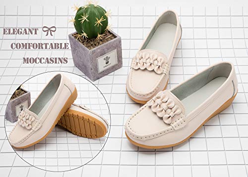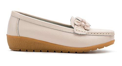 SMajong Mocasines para Mujer Loafers de Cuero Zapato Plano Casual Zapatos de Conducción Cómodos 38 EU (tamaño de Etiqueta 39)