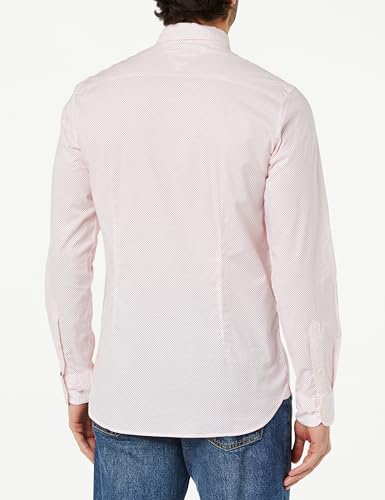 Tommy Hilfiger Flex Mini Print SF Shirt MW0MW33762 Camisas Casuales, Rojo (Optic White/Fierce Red), L para Hombre