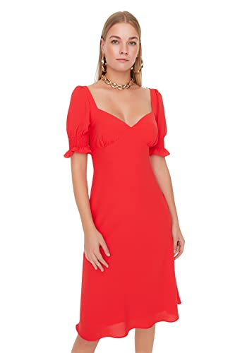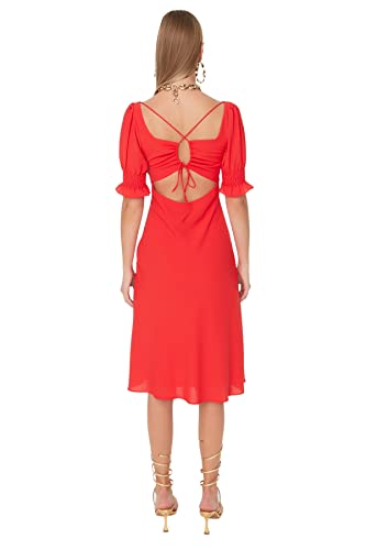 Trendyol Women Woven Dress Mujer Midi Basic Regular fit Vestido Tejido, Red, 40