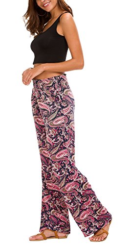 Urban GoCo Mujer Pantalón Palazzo de Pierna Ancha Casual Estampado Floral Baggy Pantalones (Large, 6)